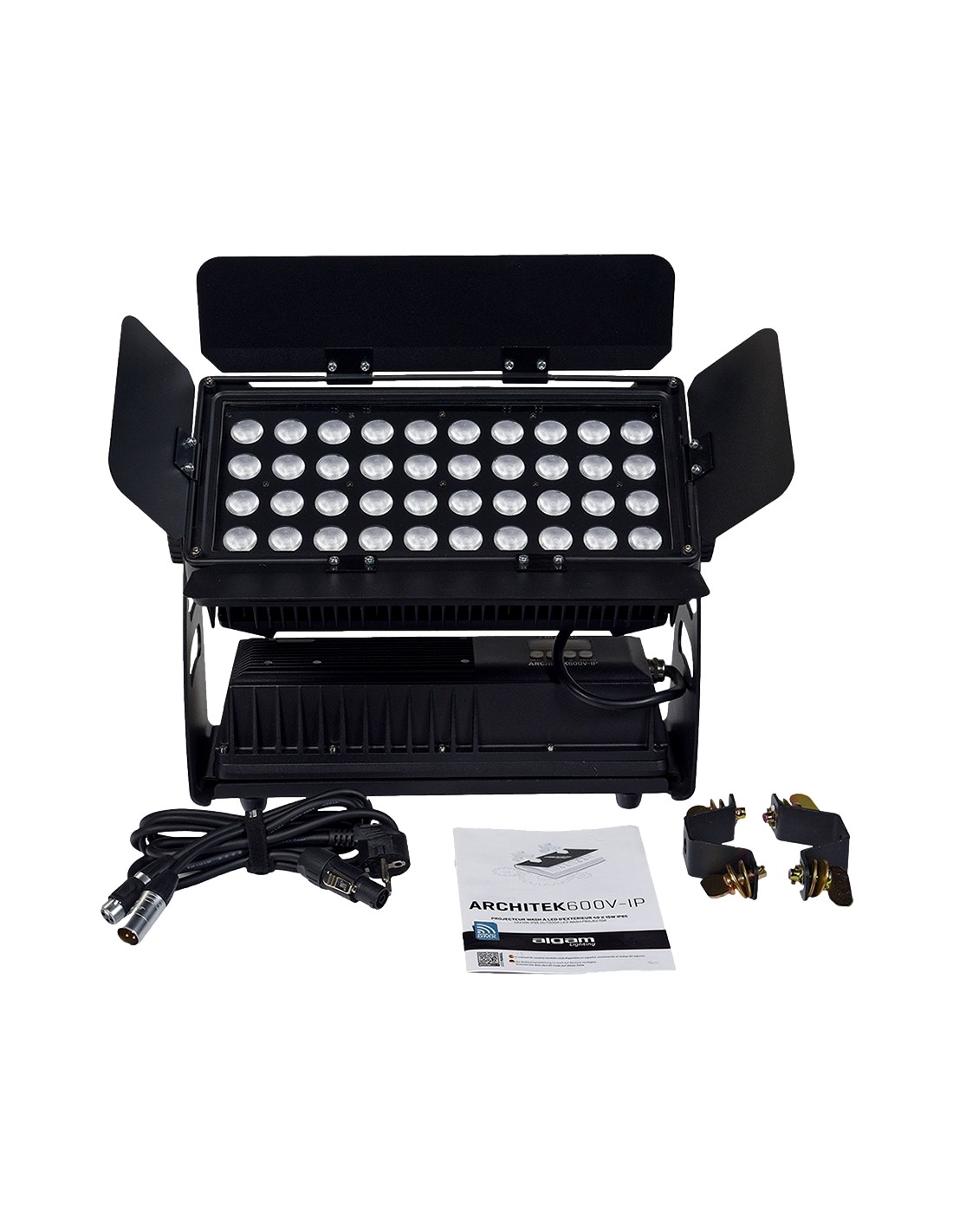 - Livré avec : Câble d'alimentation IP, câble DMX IP avec attache velcro, et 2 interfaces OMEGA.
