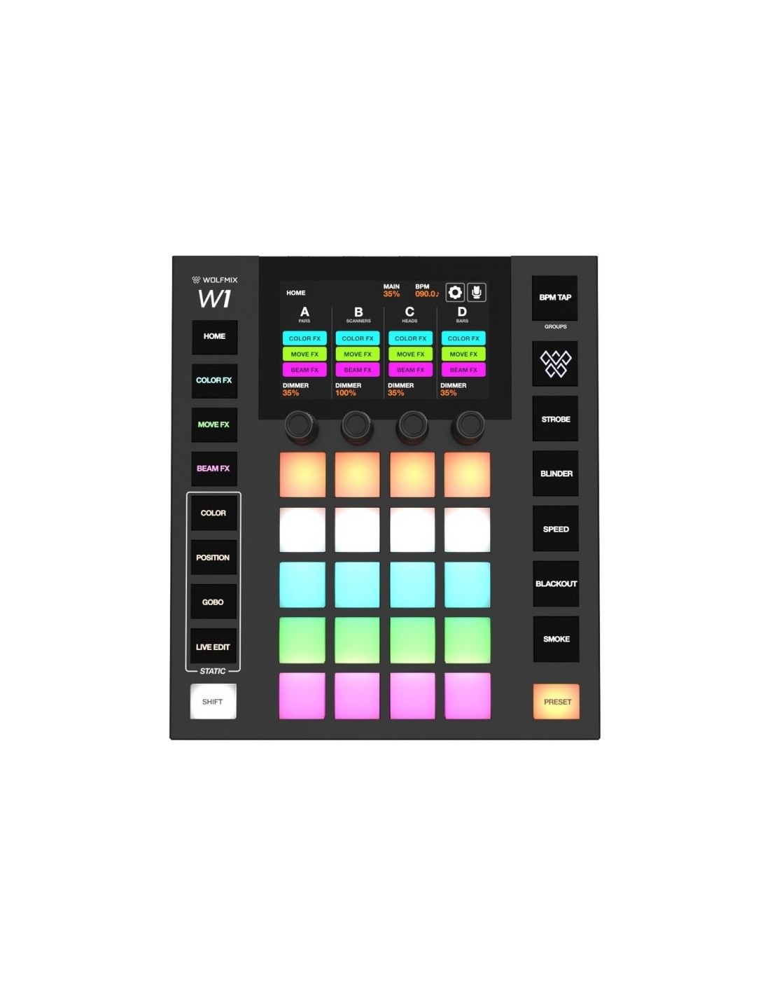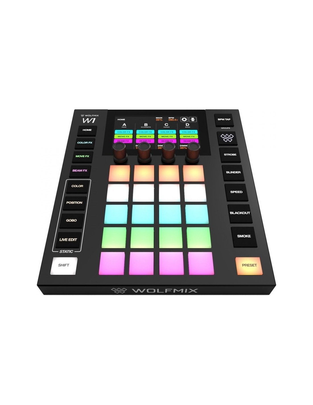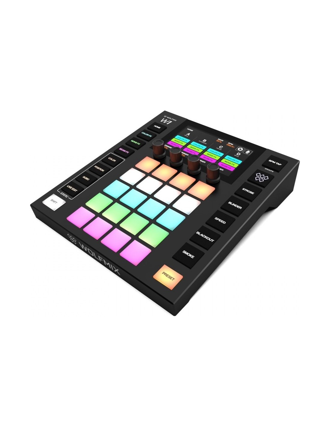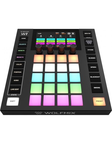 Inside its robust hardware, you'll find a toolbox of FX modules, music synchronization capabilities, and support for up to 4 DMX universes. With the Wolfmix W1, you have the flexibility to choose from thousands of light fixtures or even build your own shows directly within the controller without the need for a laptop. It's the ideal solution for live performances, discos, clubs, or any other event where you want to elevate the visual experience.