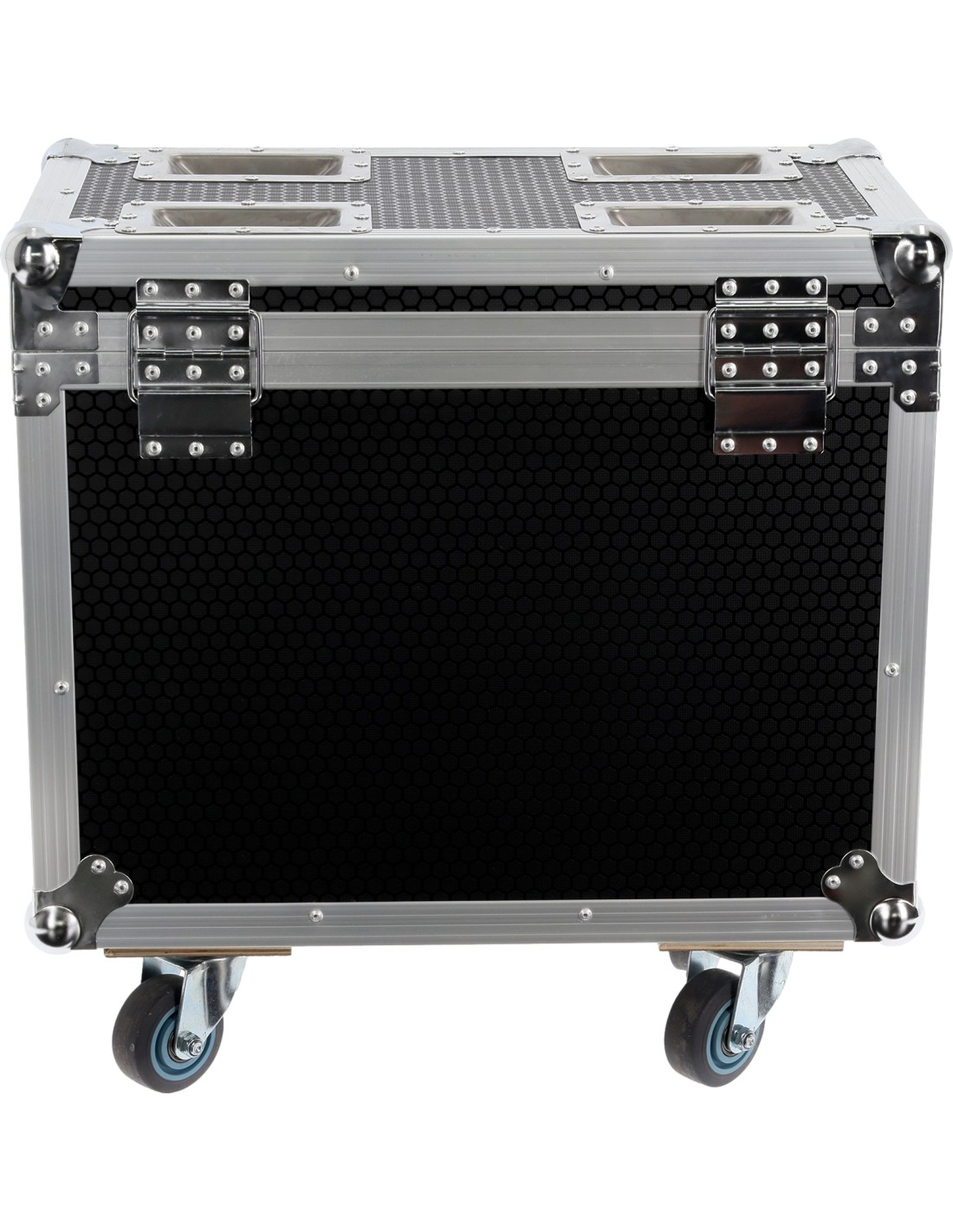 This wooden flight case is specifically designed to provide optimal protection for two MS150 moving heads during transport and storage. It is equipped with wheels to facilitate the movement of your gear, even on uneven surfaces. Made from robust materials, it offers effective protection against impacts, scratches, and other potential damages during transport. Its interior is padded to keep the fixtures securely in place and absorb vibrations, while the locking of the top panel is ensured by a series of butterfly latches.
