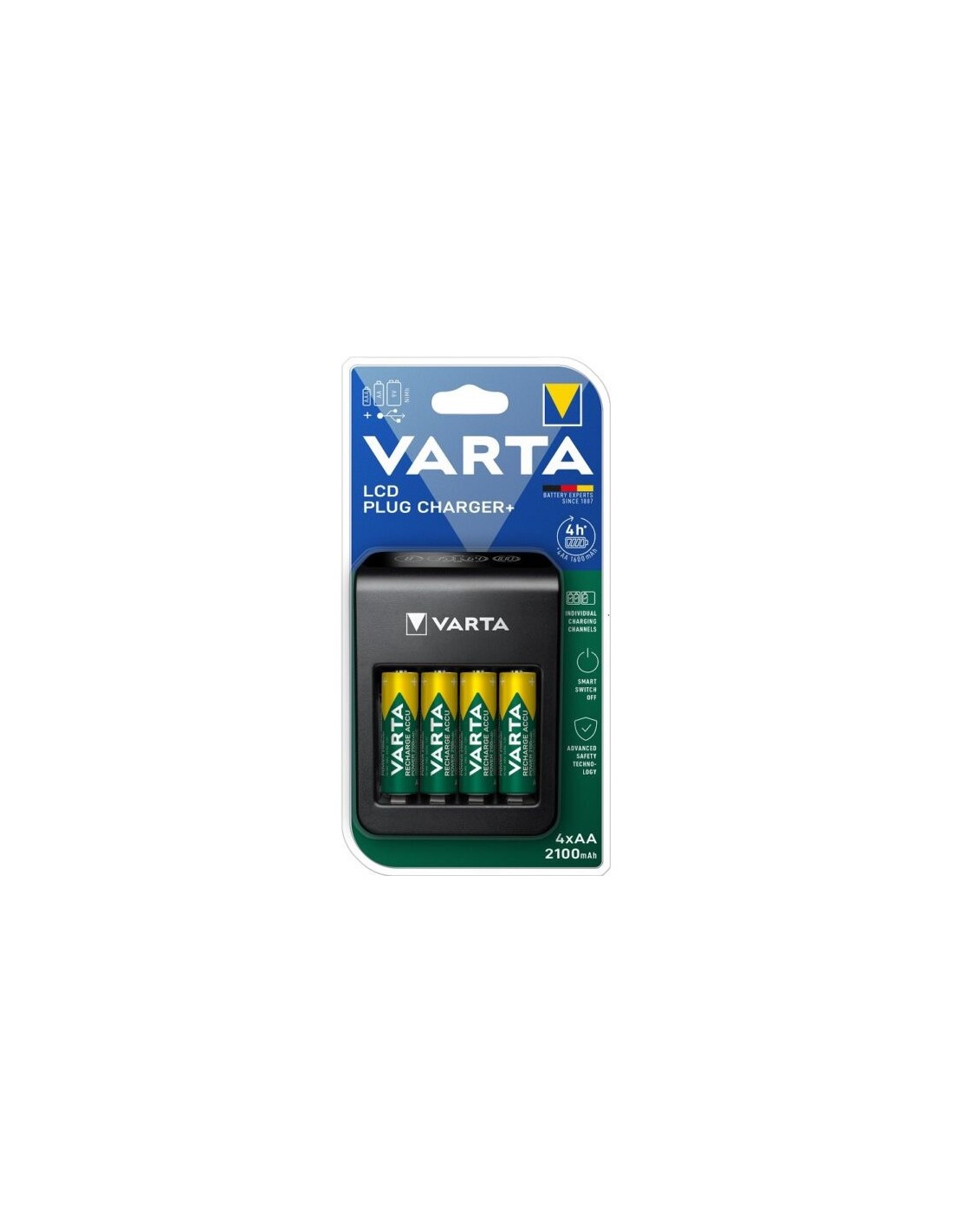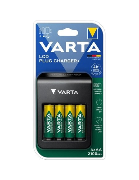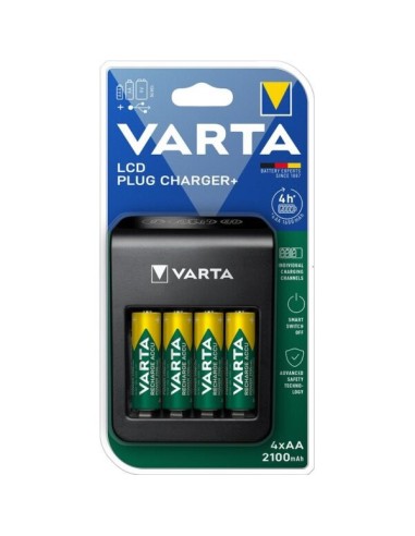 De Varta LCD Plug Charger+ is Varta's premium productlijn! De Varta LCD-laders+ zijn uitgerust met een voor de gebruiker geoptimaliseerd LCD-scherm en met geavanceerde prestatiefuncties zoals lage oplaadtijden, opladen met één sleuf en conditioneringsmodus. De lader is plug and play en kan in het stopcontact worden geplaatst. De oplader is voorzien van een USB-poort waarmee je apparaten apart kunt opladen. Deze oplader wordt geleverd met 4 stuks oplaadbare AA-batterijen van 2100 mAh.De oplader geschikt is voor AA-, AAA- en 9V oplaadbare Ni-Mh-batterijen